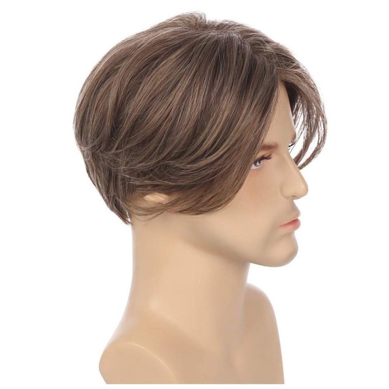 Salaibs Brown Short Wigs for Men Middle Part Straight Hair Wig Synthetic Fiber Daily Wig