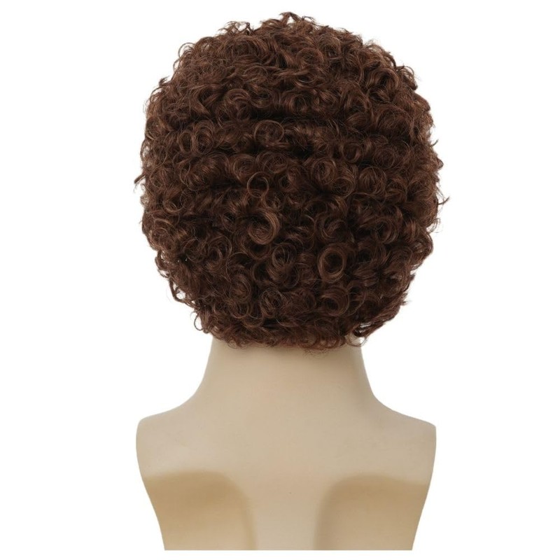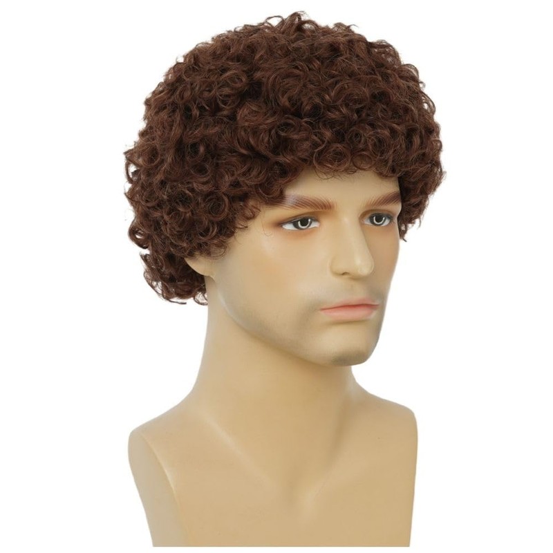 Salaibs Men's Brown Afro Wig Curly Short Wig 70s 80s Natural Realistic Synthetic Elves Wig for Disco Daily Use