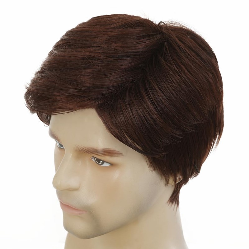 Salaibs Mens Brown Short Wigs Layered Synthetic Heat Resistant Fiber Wig for Cosplay Daily Party Use