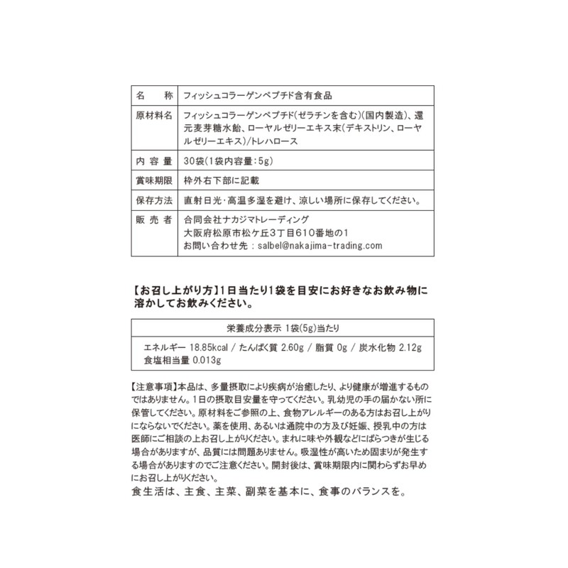SALBEL 【多数のメディアに掲載】 ローヤルコラーゲン パウダー 魚由来 ローヤルゼリー配合 1包5g(30包入) sb03