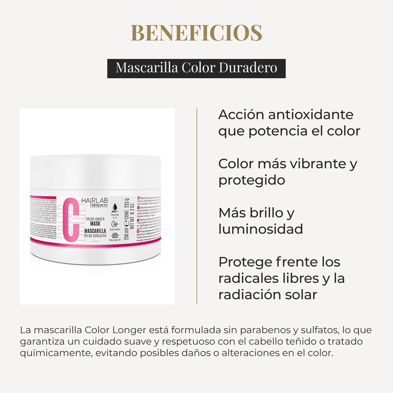 Salerm - Dyed Hair Mask - Color Longer Hair Lab - 250ml - with Vitamins A and E - Seals and Maintains Color - Brilliant Mane - Sulfate and Paraben Free
