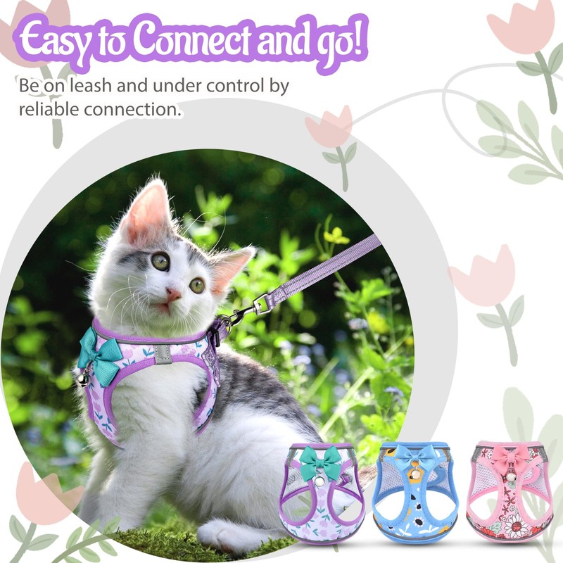 - Cute Floral Cat Harness:Tired of plain and dull designs? The cat harness designed with flowers in mind and is full of the scent of spring. As if in a sea of flowers all over the mountains. Stylish, cute and Premium. Add a splash of colour to your cat outdoor adventures. Make your kitty stand out from the crowd