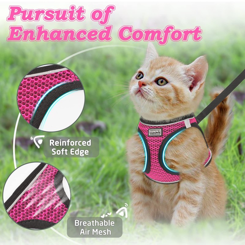 SALFSE Cat Harness and Leash for Walking Escape Proof, Adjustable Kitten Vest Harness Reflective Soft Mesh Puppy Harness for Outdoor, Comfort Fit, Easy to Control (Pink, S)
