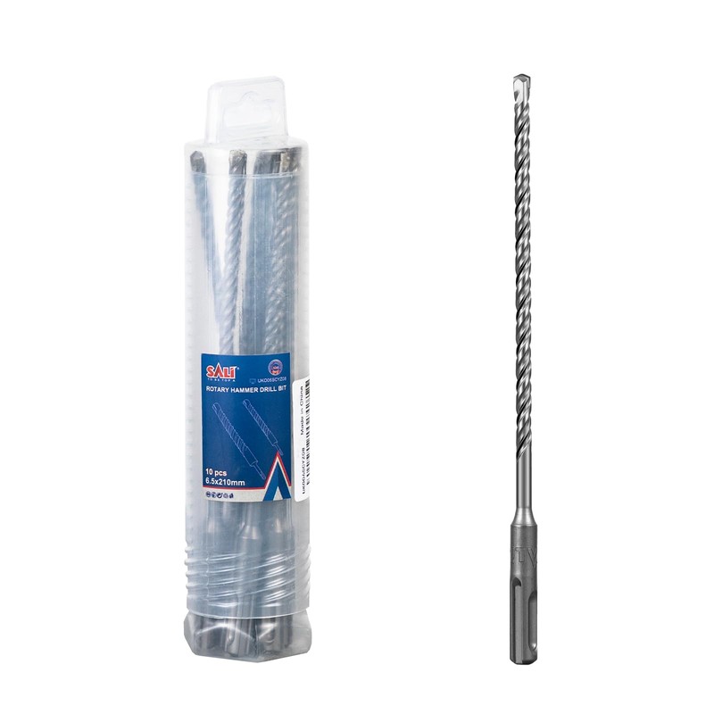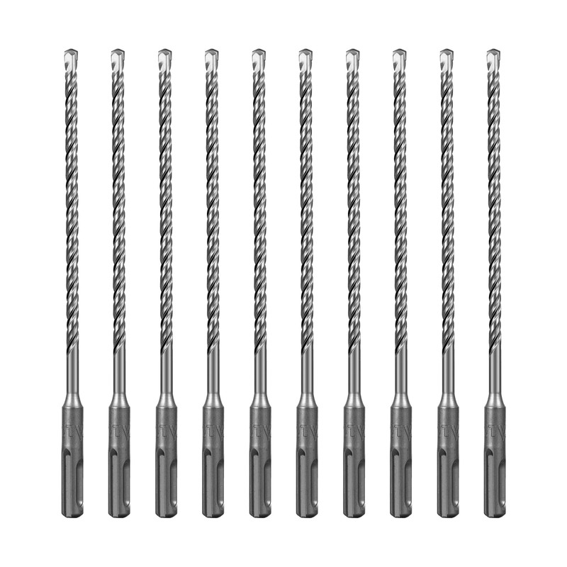 SALI 10PCS SDS Plus Rotary Hammer Drill Bit Concrete Drill Bit Kit Double Thread Tungsten Carbide Tip Suitable for Concrete, Brick, Cement Walls, Stone, 6.5mm x 210mm Hammer Drill Bits for Concrete