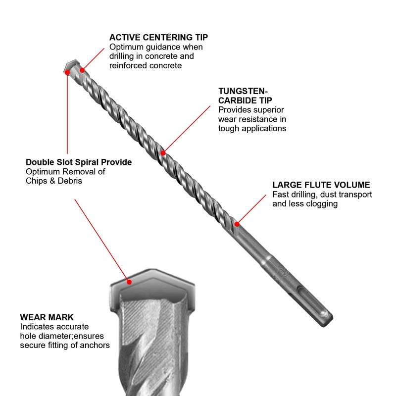 - SDS-PLUS SHANK - Designed with an SDS Plus shaft, these bits are compatible with a range of rotary hammer drills. When fixed to an electric or hand drill machine, this concrete drill bit can drill through tough loads. For use in granite, concrete, masonry & more