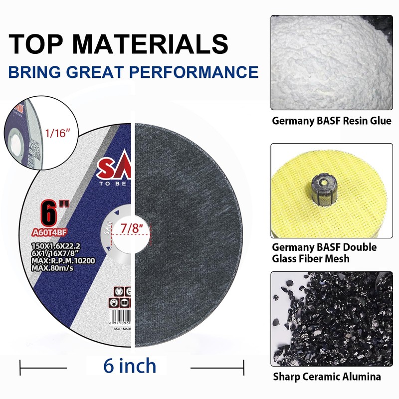 SALI 25 Pack 6" Cut Off Wheel, 1/16" x 7/8" Aluminum Oxide, Blue, For Angle Grinder, Max RPM 10200
