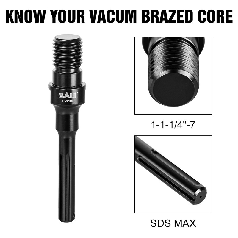- Heavy duty core drill adapter for 1-1/4" Unc thread male to sds max shank