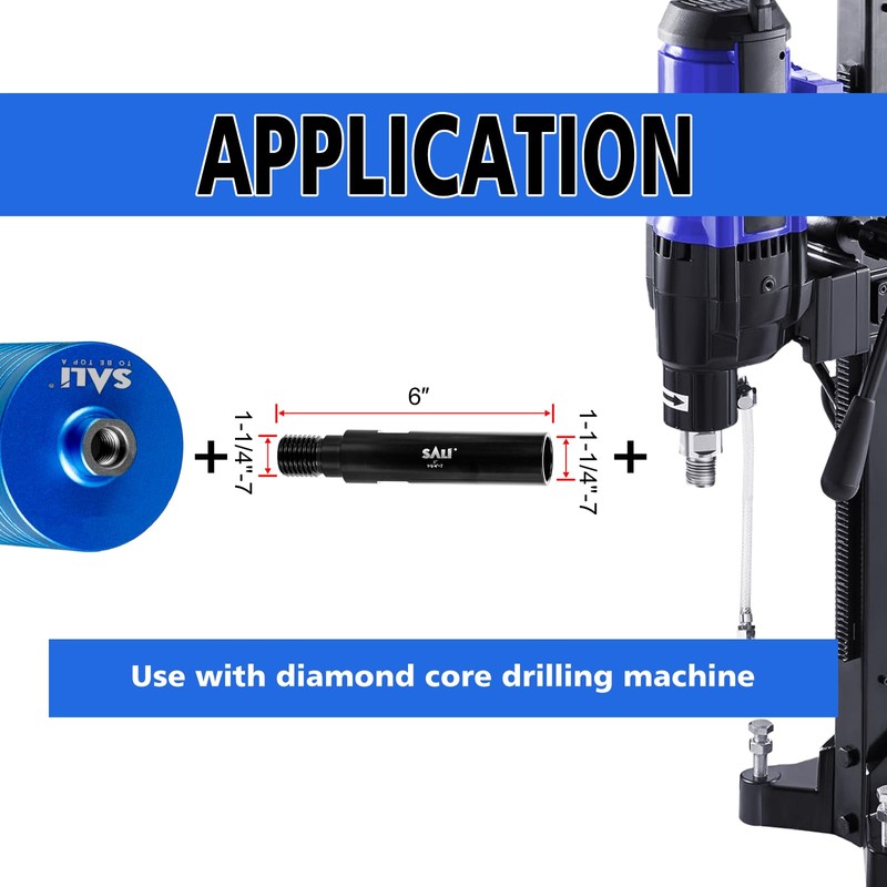 • Multi functional use: This product is a 6 inch extension rod used to connect diamond core drill bits, which can connect 1-1/4"-7 thread core drill bits during operation. It is very suitable for various drilling operations and can effectively increase the working range