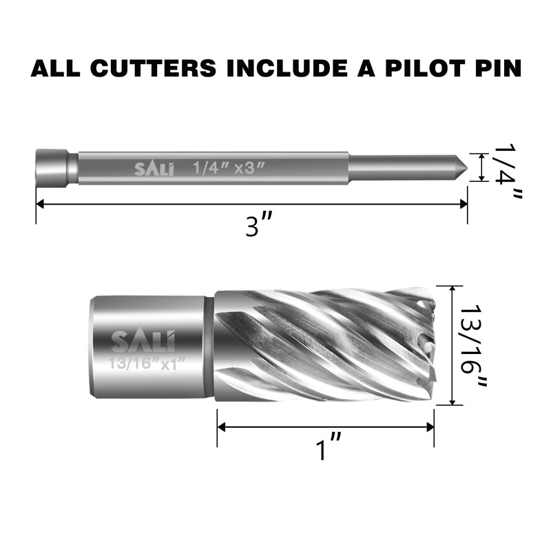 SALI Annular Cutter Diameter 13/16 Inch with Weldon Shank 3/4"(with 2 Flats) Cutting Depth 1" Mag Drill Bit for Magnetic Drill Press HSS Fully Ground Drill with One 1/4"*3" Pilot Pin