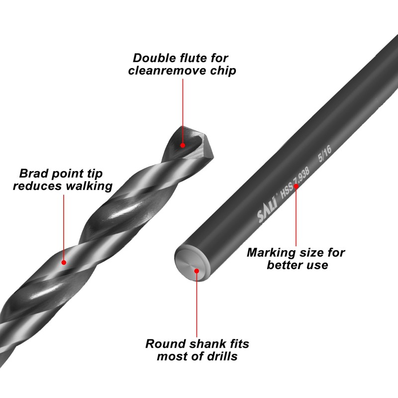- Durable black oxide coating:Featuring a black oxide coating and a 135° split point design, while lasting 50% longer than standard hss bits, offering a balance of hardness and toughness for enhanced wear resistance