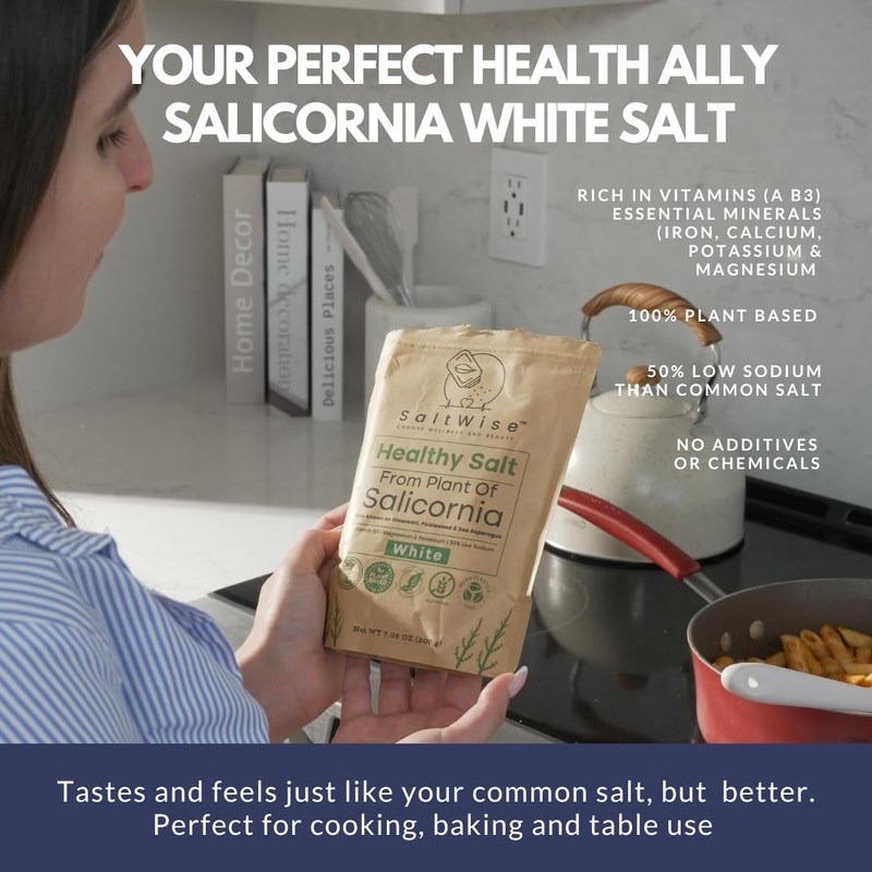 SaltWise Salicornia White Salt – Low Sodium Salt Substitute, Plant-Based Mineral Salt, Kosher, 100% Natural, No Additives (7.05 oz / 200g)