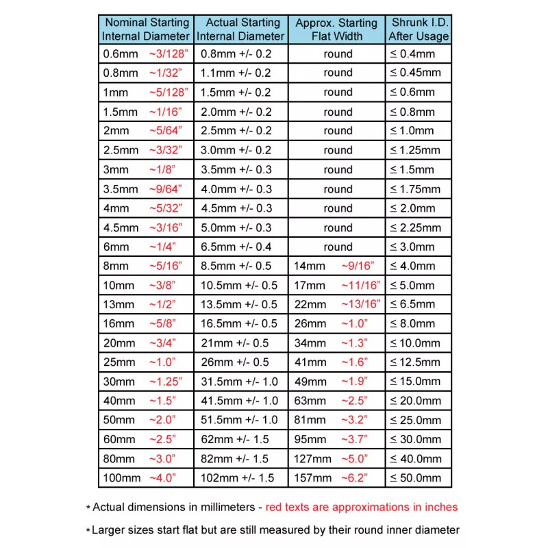 - Shrunk Internal Diameter - the tubing will shrink down to smaller than this size, guaranteed!