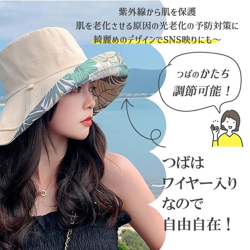 - 『被るだけ簡単な小顔術』日焼け防止の一方で、帽子が驚きな小顔効果を発揮しています。頭に被るだけで、大きなつばは顔周りを隠れて、どんな顔型でも視覚的に小さく見えます。また、つばの周りにソフトワイヤーを加えて、コーディネートやシーンに合わせてシルエットが自由自在です。お好みの形を楽しみと同時に視界に妨げることがないです。