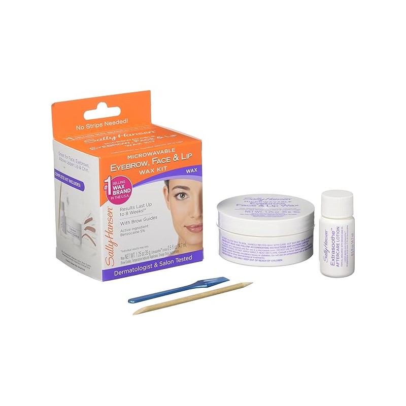 Sally Hansen Microwavable Eyebrow, Face & Lip Wax Kit, Microwavable Wax, 0.31 Oz, Face Wax Strips, At Home Wax Strips, Body Wax Strips, Home Waxing Kit, Effective, Easy to Use