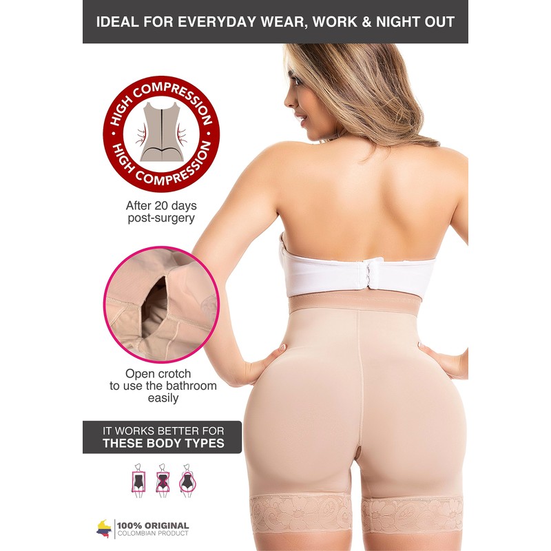 - PAINLESS TECHNOLOGY WHEREVER YOU GO: Wear your Colombian fajas for women and walk without your thighs harshly rubbing against each other. This slimming underwear offers full tummy coverage, and the right control without discomfort. This Salome high waist compression shapewear is designed with a silicone strip at the top and bottom to prevent it from rolling. It also features an open crotch with sliding fabric design to help ease the bathroom visit. Find the perfect butt lift shorts!