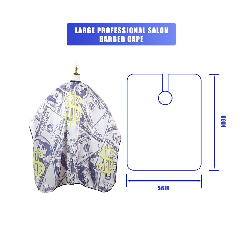 Salon Hair Cutting Cape for Stylist, Extra Large 66" x 56" Professional Barber Cape for Adults & Kids, Lightweight Polyester, Water-Resistant & Easy to Clean (Dollars Pattern 3)