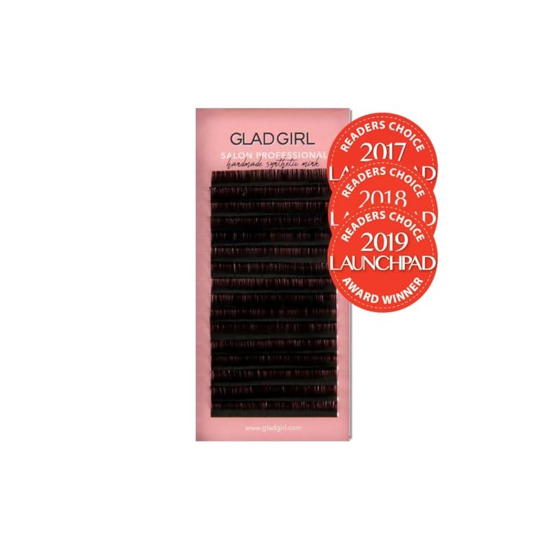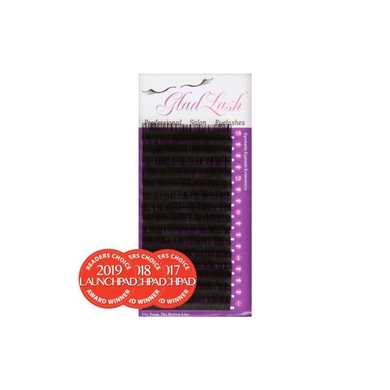 Salon Professional eyelash extensions by Glad Lash are award winning synthetic mink extensions. They are a supple, soft and natural looking lash at an affordable price. These top quality vegan lashes come on a tray with 16 convenient, movable rows making selecting lashes for application an absolute breeze.