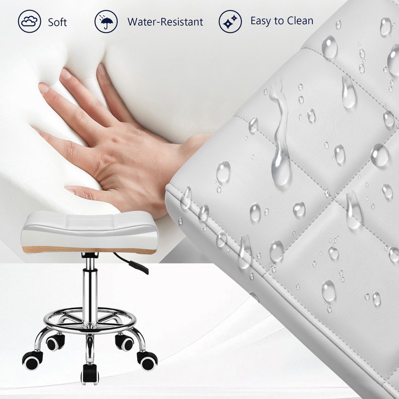 Salon Rolling Stool with Wheels - 300lbs Adjustable Hydraulic Stool,360° Swive with Foot Rest,Pu Leahter Super Soft Seat Cushion Stools for Lash Tattoo Stylist Massage Perfect for Work SPA (White)