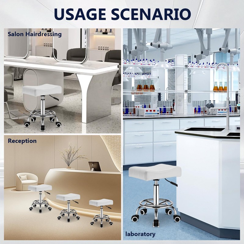 - APPLICABLE IN MULTIPLE SCENES - This stool on wheels is your ideal choice in various places with its multi-purpose design and wide applicability. It is not only suitable for barber shops, salons, tattoo studios, but also for dental clinics, laboratories, etc. The easy assembly design allows you to quickly install your rolling adjustable stool, making your every use easier and more convenient.