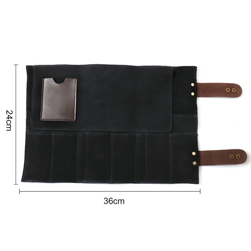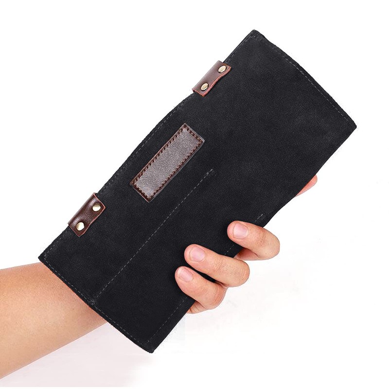 Salon Scissors Bag Roll Up, 12 Pockets Genuine Leather Stylist Grooming Scissors Holder Barber Hair Scissor Shears Cases for Hairdressers (HJ-ZP011-Black)