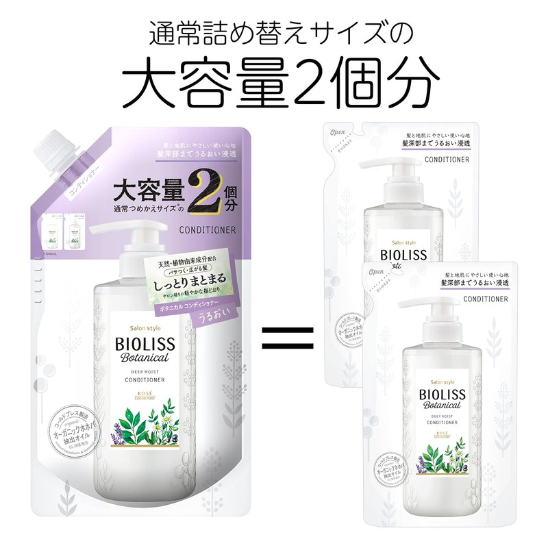SALON STYLE KOSE Biolis Botanical Conditioner (Deep Moist) Refill, Large Capacity, Treatment, Refill, 24.0 fl oz (680 ml)