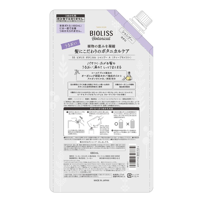 SALON STYLE KOSE Biolis Botanical Shampoo (Deep Moist) Refill, Large Capacity, Moist & Tight, Refill, 24.0 fl oz (680 ml)