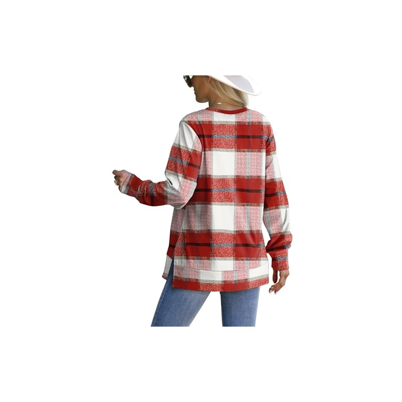 Saloogoe Fall Outfits for Women 2025 Fashion Winter Clothing Crewneck Sweatshirt Old Money Clothes Plaid Shirts Brown L