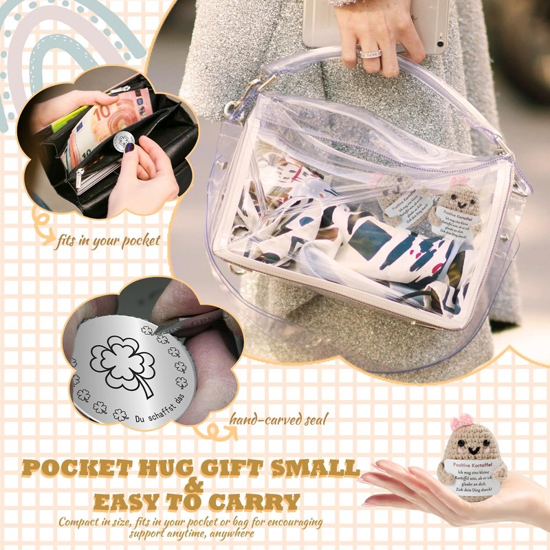 SALOVEN Ocket Hug Positive Potato, Potato Lucky Charm with Positive Energy and Creative Design, Farewell & Get Well Soon Courage Gift