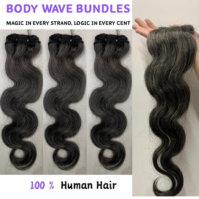 - Grey Salt & Pepper Body Wave Bundles Length & Weight: Bundles: 90-95/bundle, 12-30 inches in stock. 180% density, usually 3-4 bundles of body wave human hair bundles are enough to make a full beautiful head.