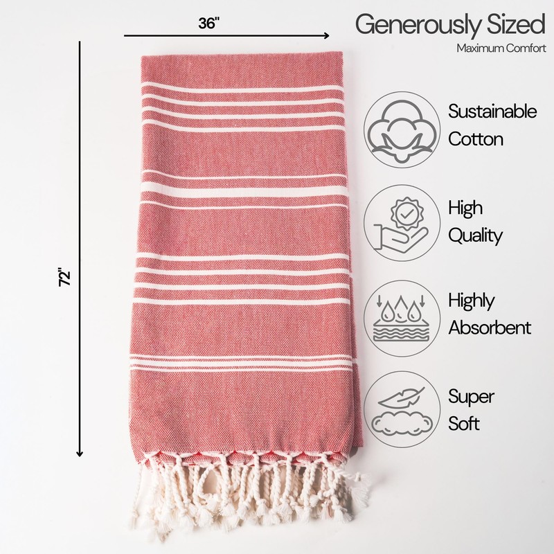 - Functional Design: No more sandy beach towels – simply shake off the sand and you're good to go! Our quick dry bath towels boast exceptional absorbency, supreme softness, rapid drying, and lightweight construction, ensuring ultimate comfort and convenience. Each turkish towel undergoes prewashing and is inherently sand-resistant, guaranteeing a hassle-free beach outing. Their distinctive stripe design adorned with tassels make them an ideal boho bathroom accessory.