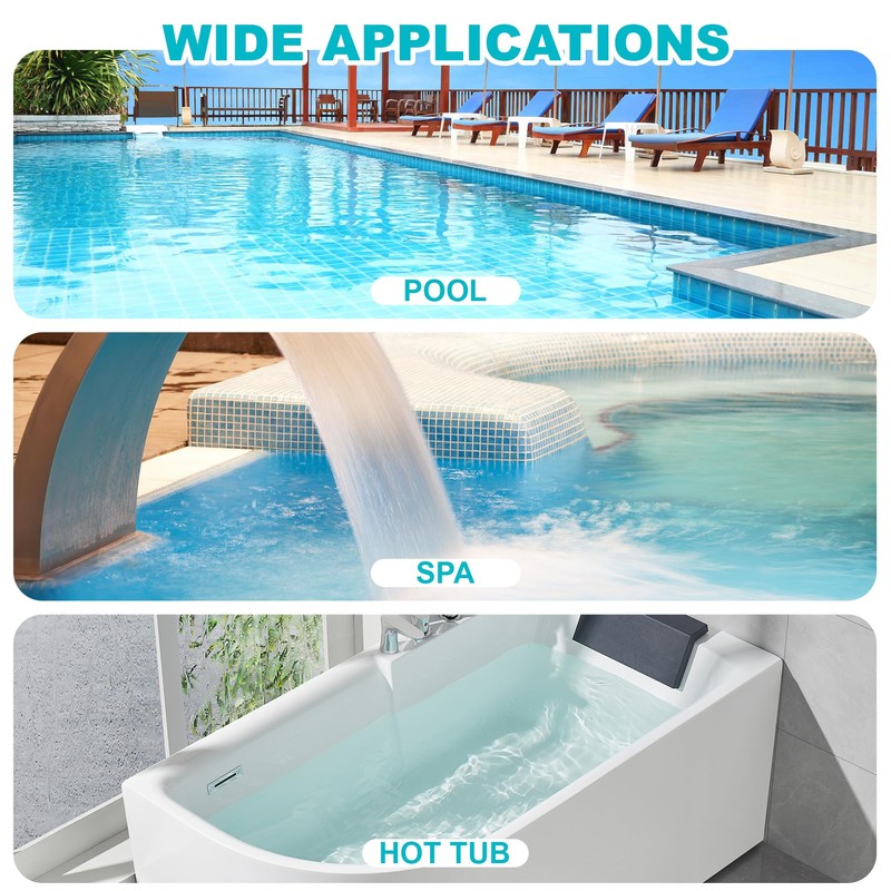 - Saltwater Pool Test Kit: The salt test part is specially designed. For saltwater pools and hot tubs, the common ideal salt concentration range is 2700-3400 ppm. Our pool test strips can measure salt levels in the range of 0-6000 ppm, and we have specifically highlighted the range of 2700-3400 ppm on the color chart. This allows you to know clearly whether the salt you've added is suitable, eliminating guesswork.