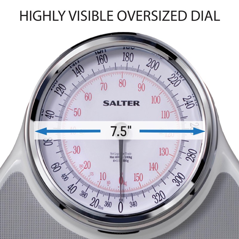 - The extra-large 7.5-inch dial is easy to read and features both pound and kilo measurements.NEVER use chemicals or abrasives to clean