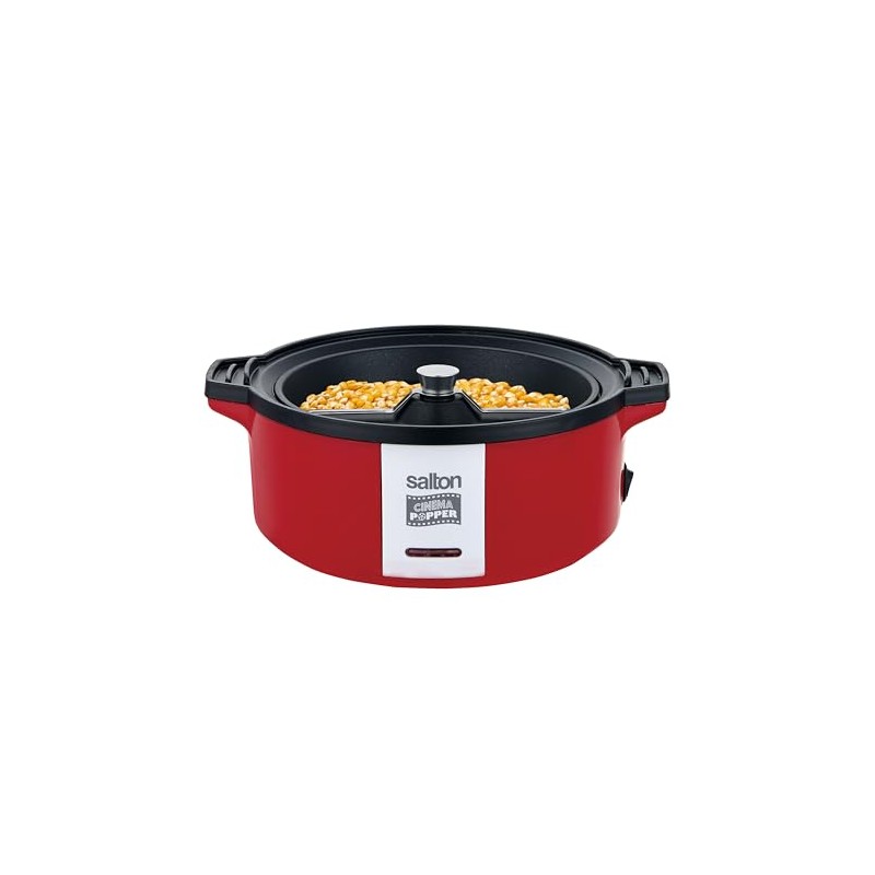 Salton Cinema Stir Popcorn Maker, Low Calorie Snack, Flip to Serving Bowl, Convenient Countertop Size, Durable & Easy to Use, Red (CP1778)