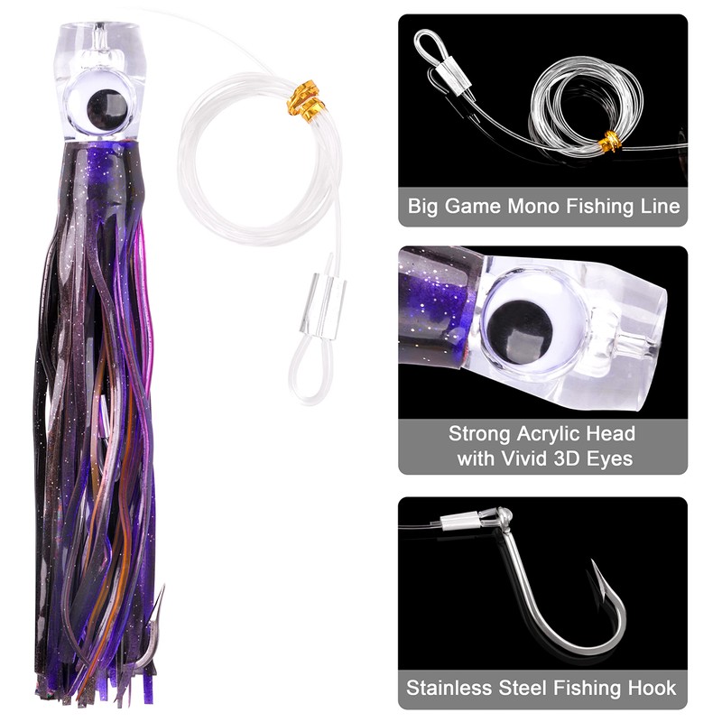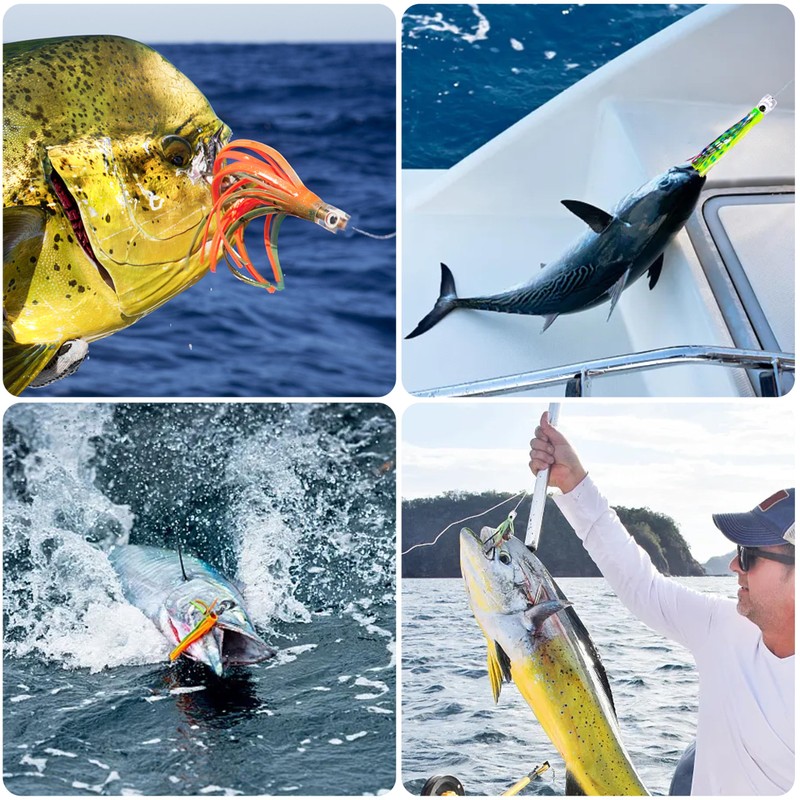 - 【TARGET SPECIES】Saltwater Fishing Trolling Lures for Marlin, Sailfish, Tuna, Mackeral, Kingfish, Ahi, Dolphinfish, Barracuda, Wahoo and any game fish that swims! Please handle with special care for there are several sharp hooks and corners. Please keep out of reach of children.