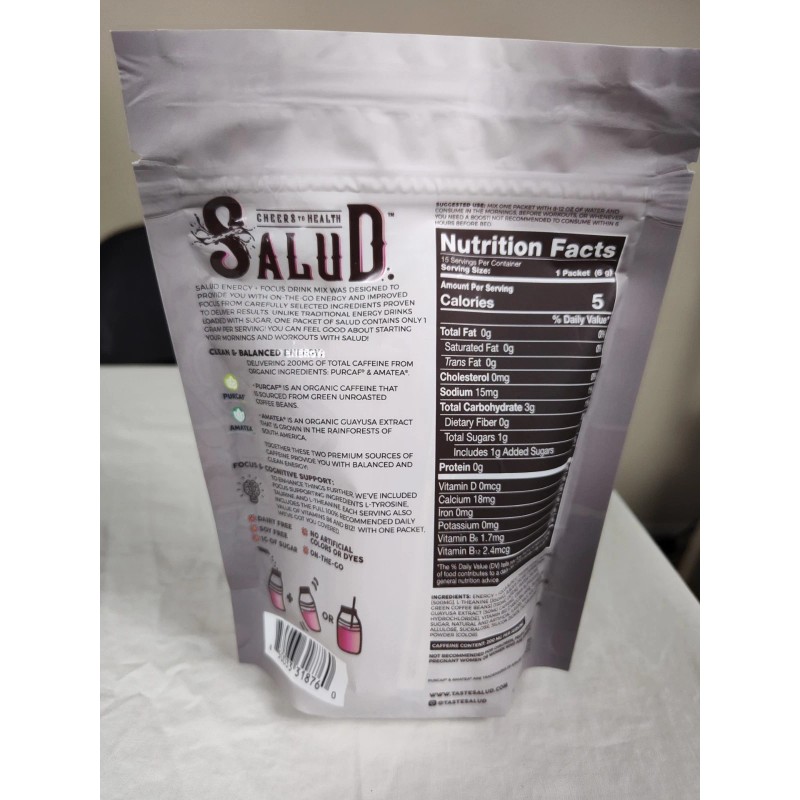 Salud 2-in-1 Hydration Packets Energy Focus Electrolytes Powder Dragon Fruit.