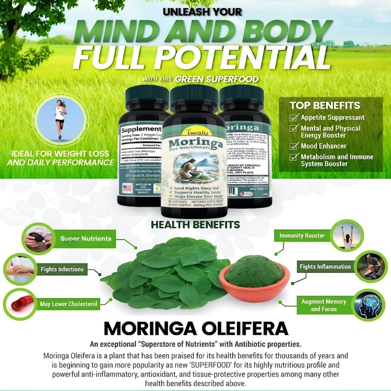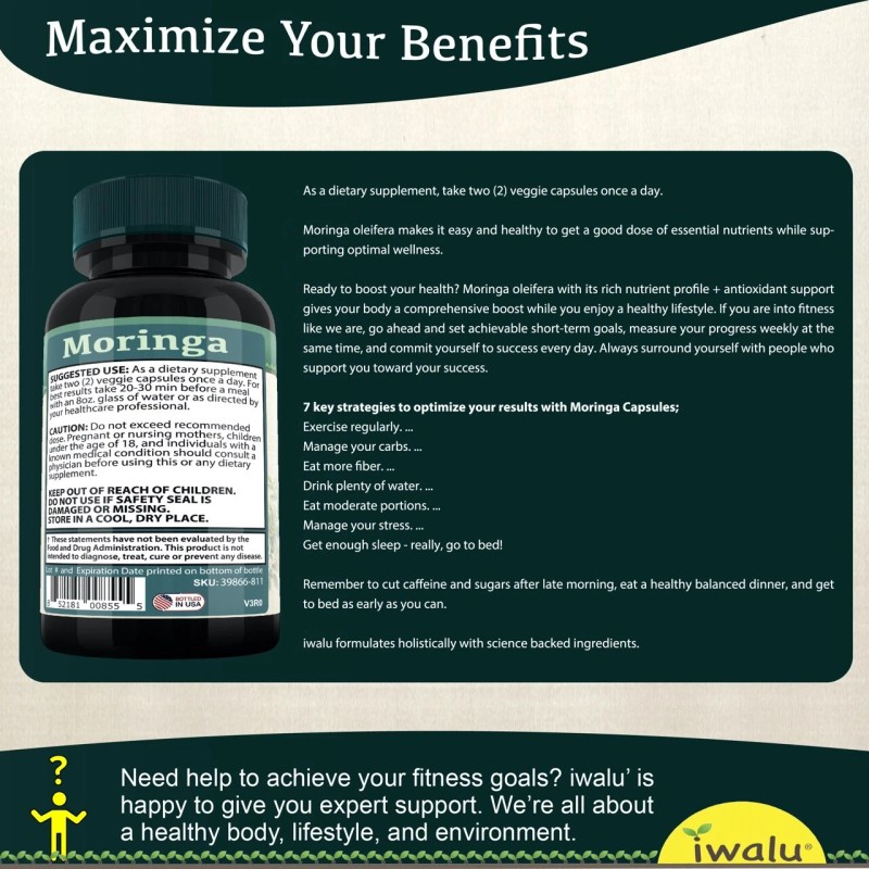 | Ingredients: | Moringa Supplement Organic Non GMO Moringa Leaf Powder Capsules |