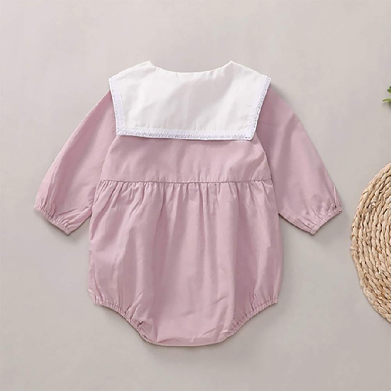 Salute Baby Girl Peter Pan Collar Romper Cotton Causal Long Sleeve Jumpsuit Newborn Baby Bodysuit Outfit Clothes 90 Pot Lavender