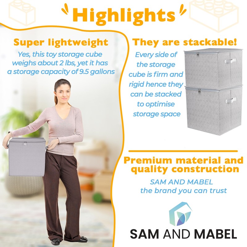 SAM AND MABEL Toy Storage Basket and Play Mat for Kids - 13"x13"x13" Stackable and Foldable Cubby Box Toy Organizers and Storage Bins with Lid for Playroom (Pebble Gray)