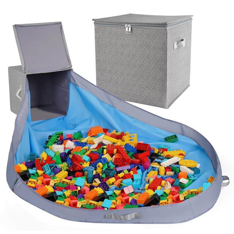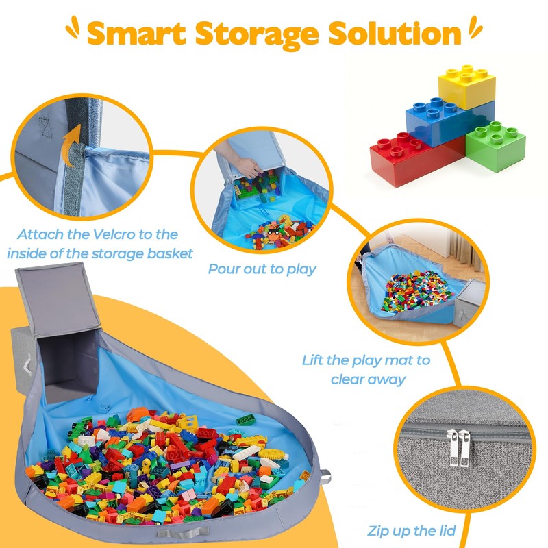 - TIDY UP IN SECONDS: Say goodbye to messy playrooms with our storage organizer! The play mat provides a dedicated area for creative play, and when it's time to pack up, simply gather the handles and tip everything back into the compact storage cube.