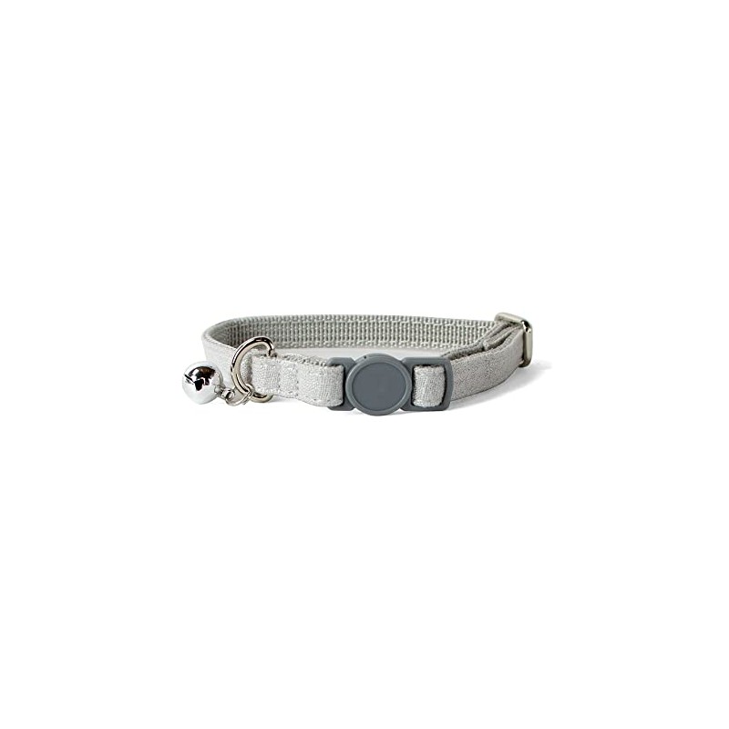 Sam and Maui Linen Blend Adjustable Cat Collar with Breakaway Quick Release Buckle and Bell Light Grey C