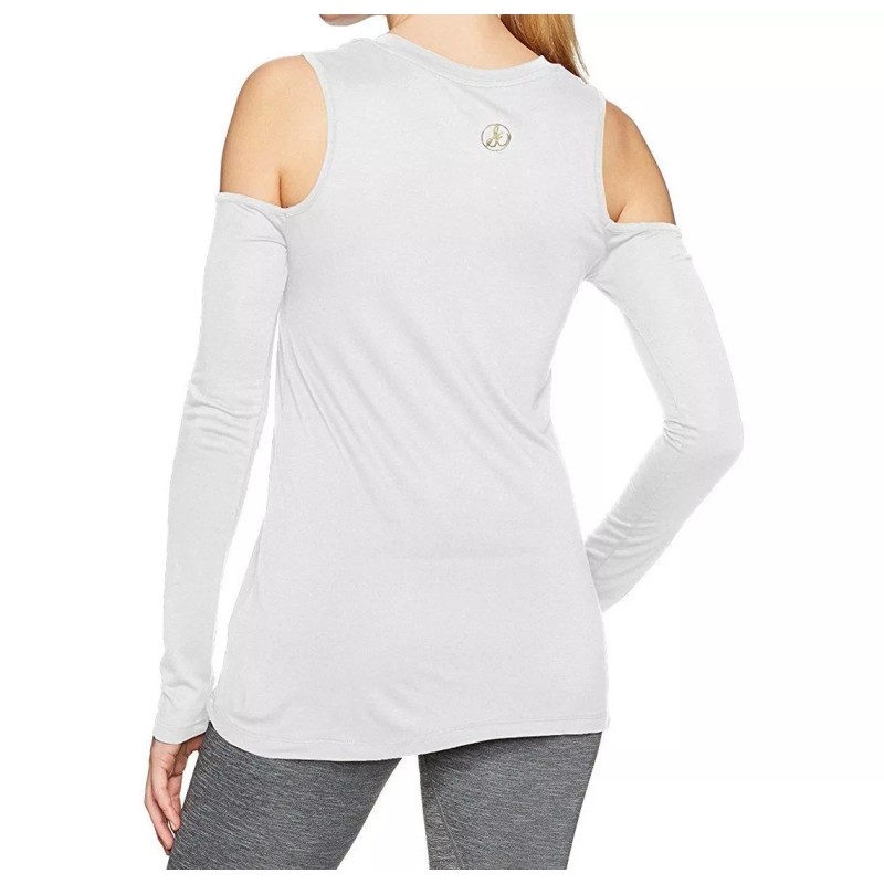 This easy to layer cold shoulder top, keeps you cool, comfortable and covered before, during and after workouts.