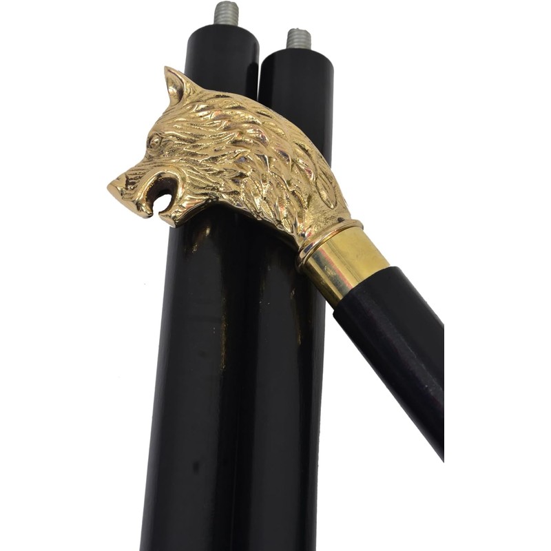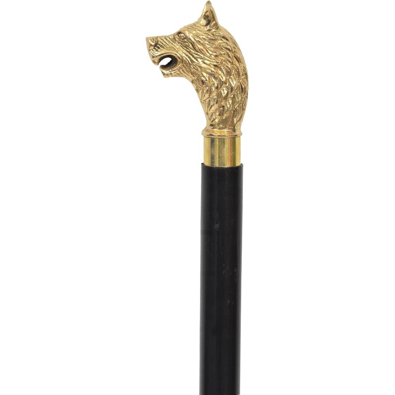 Samad Nautical Golden Wolf Head Brass Handle Walking Stick – 36-Inch Black Cane for Men & Women