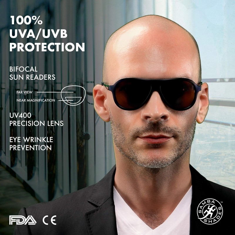 Samba Shades Gafas de sol Bifocal Readers Pilot Militar Cool Factor, Azul / Patchwork, L
