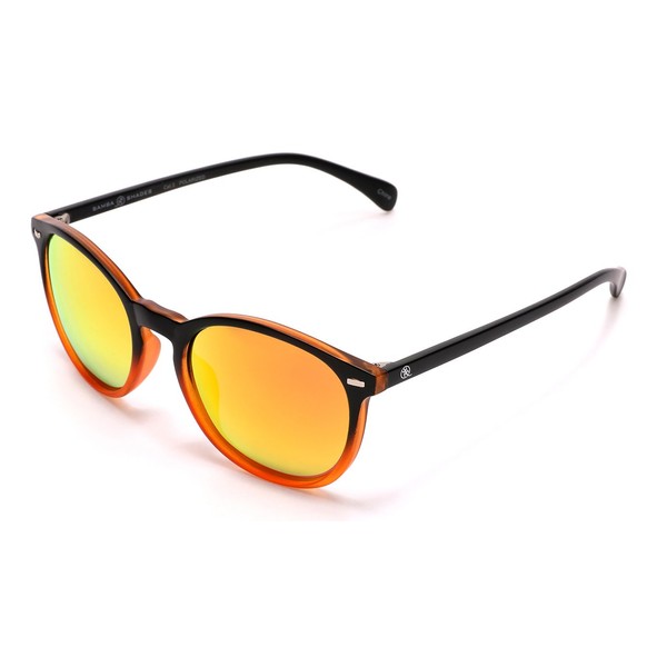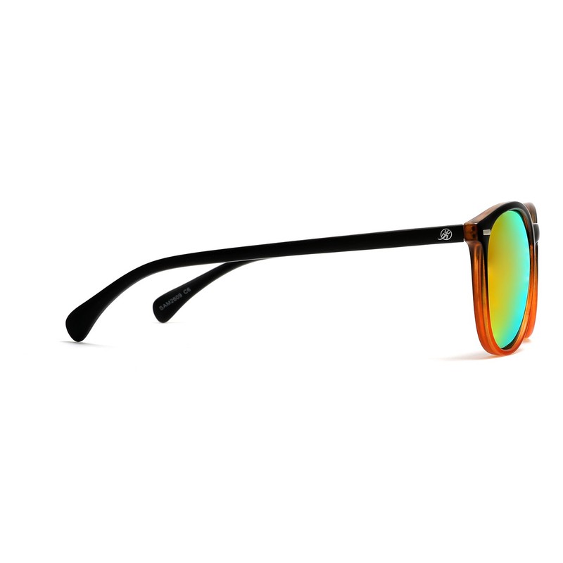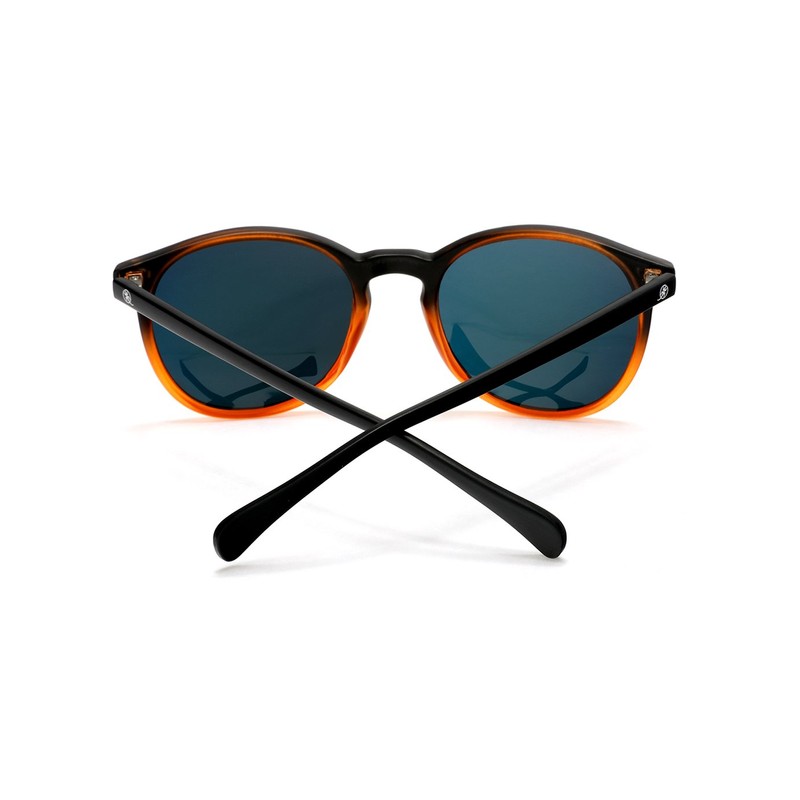 SAMBA SHADES Polarized Round Verona Horned Rim Sunglasses with Black and Transparent Orange Frame, Mirrored Lens