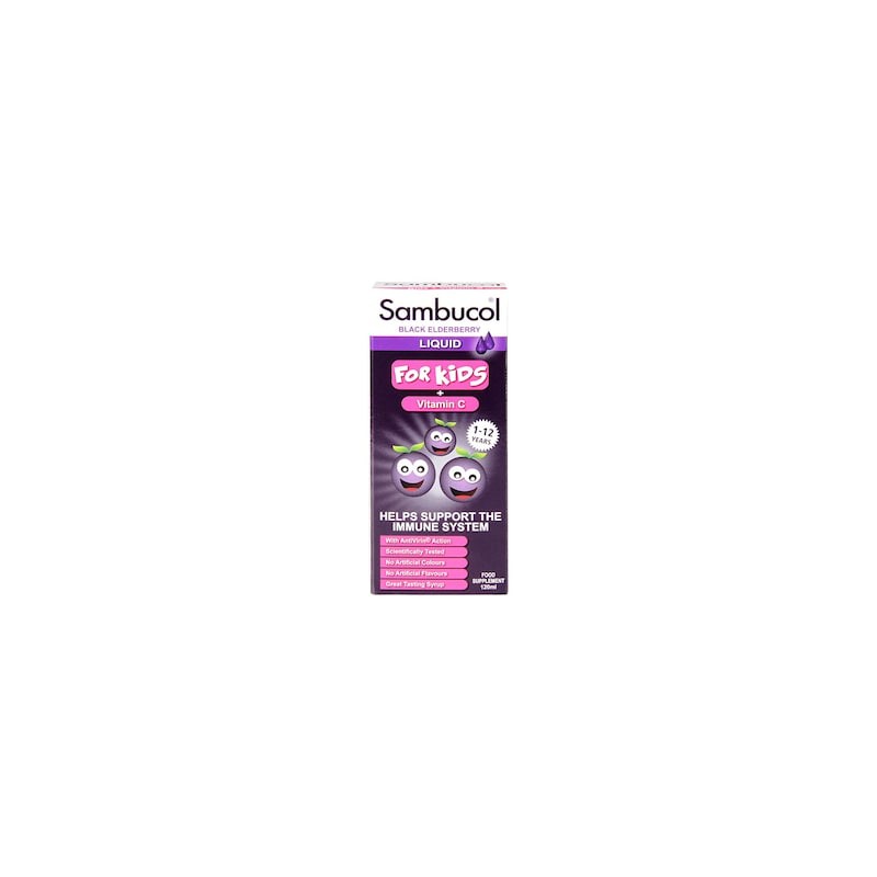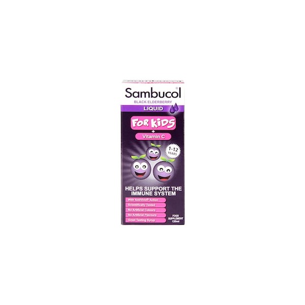 Keep kids healthy all year round! Sambucol for Kids is a great tasting liquid containing Black Elderberries and Vitamin C which supports the immune system.