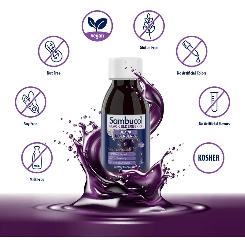 - Contains (1) 4 oz. bottle of Sambucol Black Elderberry Original Formula. Sambucol Black Elderberry Original Formula high antioxidant black elderberry extract provides strong immune system support to help you & your family stay healthy throughout the year.