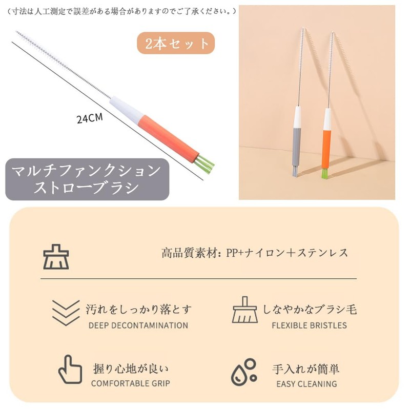 - Set Contents: Set of 2 straw brushes, Size: Approx. 9.4 inches (24 cm). Color: Gray + Orange (Please note that measurements are man-made and may have some errors. )