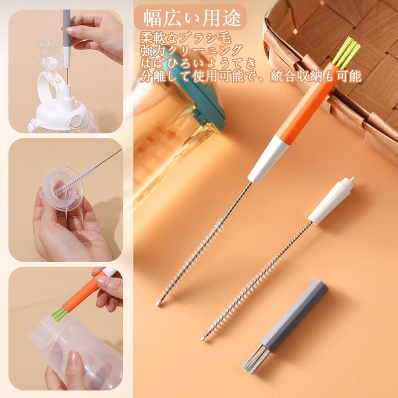 - 【MULTIPURPOSE USE】Suitable for cleaning various narrow pipes and gaps such as straws, bottles, baby bottles, teapots, coffee makers, kitchen utensils, etc. Split and usable, 3 different uses, suitable for multiple scenes
