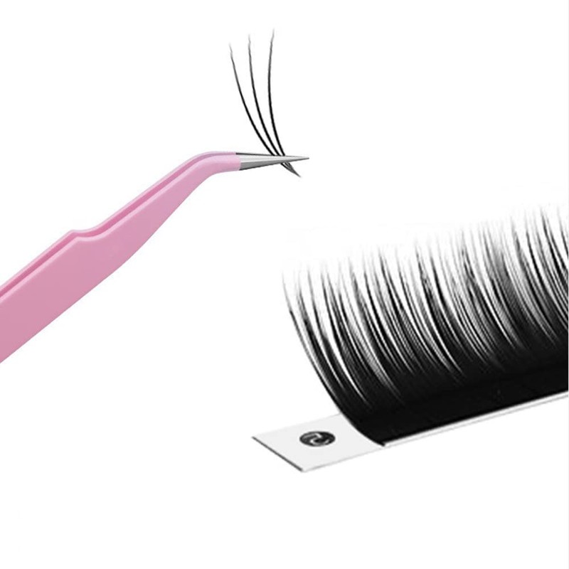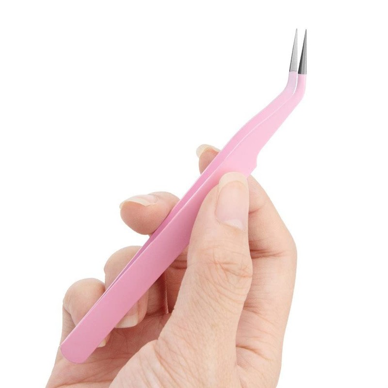 Samcos Eyelash Tweezers Pink Straight Stainless Steel Fine Work False Eyelash Tweezers Set of 2
