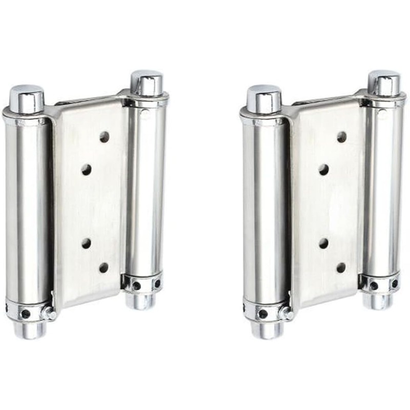 • 【Easy to Install】Spring hinges are easy to install and secure with screws. Accessories included for comfort Door hinge with double door function and bearing with strength adjustment Note: The load force does not exceed 10KG; Open the adjustment hole and insert the 180º clockwise with a standard wrench